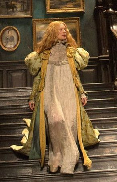 Les costumes de Crimson Peak sont remarquablement réussis, car ils parviennent à réunir l'essence d'une époque et d'un lieu tout en laissant s'exprimer la créativité du costumier. Kate Hawley accentue habilement les couleurs, les longueurs et les plissés, ajoutant une dimension artistique aux vêtements. Chaque pièce est conçue pour s'intégrer au cadre du manoir victorien, tout en reflétant la personnalité et l'évolution des personnages. Les teintes saturées, comme les rouges profonds et les jaunes dorés, contrastent avec l’atmosphère sombre et mystérieuse de l'histoire, renforçant le drame visuel. Les longueurs exagérées et les plis abondants apportent quant à eux une touche gothique qui amplifie le sentiment de mystère. Ces choix stylistiques contribuent à ancrer l'intrigue dans un univers à la fois authentique et fantasmé, où les costumes participent pleinement à la narration visuelle.