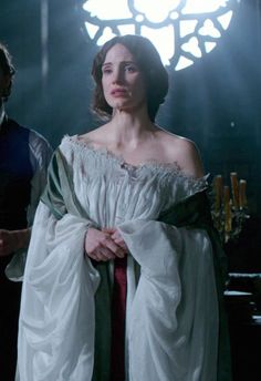 En s’imprégnant des coutumes locales, l’héroïne adopte progressivement la mode édouardienne, convenant davantage à une jeune femme résidant au Royaume-Uni. Ce style se manifeste dans des éléments distinctifs : une taille fine et cintrée, des manches bouffantes, et l’usage de tissus lourds qui renforcent l'aspect imposant des tenues. Ces détails traduisent l’influence édouardienne, mais des touches subtiles laissent deviner un autre courant esthétique. En effet, certains motifs et ornements empruntés au mouvement Arts and Crafts s’y glissent, ajoutant une dimension plus naturelle et artisanale. Cette combinaison unique enrichit les costumes, leur conférant une complexité qui reflète l'évolution du personnage entre deux cultures. Les tenues deviennent alors le reflet d'un équilibre délicat entre traditions britanniques et souvenirs américains, symbolisant le passage de l’héroïne vers un univers nouveau et énigmatique.